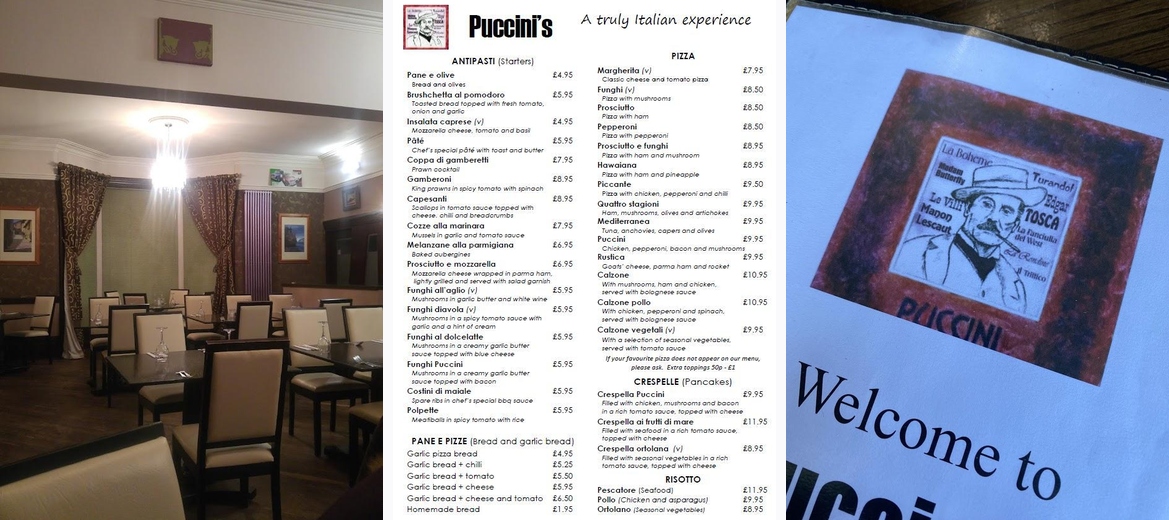 Me and my wife visited Puccini's for the first time tonight. It was a wonderful evening which we thoroughly enjoyed. The food was fantastic, top quality in both taste and presentation. We have visited many Italian restaurants over the years and this is up there with the very best. All the staff were lovely and very attentive, they made us feel so welcome which made for an even more pleasurable evening. I would recommend that you visit this restaurant, or you really are missing out. We will be visiting again very soon. Thanks guys. 🙂⭐⭐⭐⭐⭐